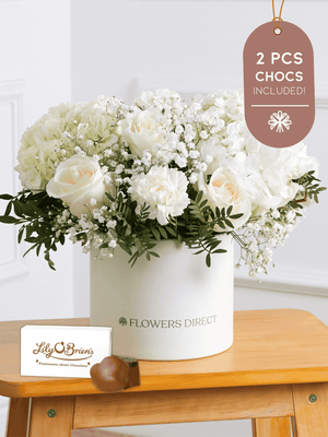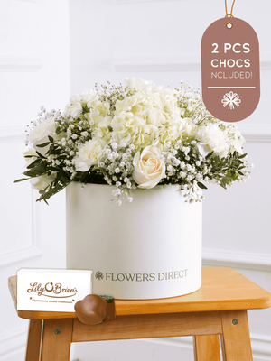 Indulge in the pure and serene beauty of our "Pure Bliss" arrangement, featuring pristine white hydrangeas, classic white roses, delicate gypsophila, and fresh pistach leaves. This elegant and timeless arrangement is the perfect way to brighten up any space and create a sense of peace and tranquility.