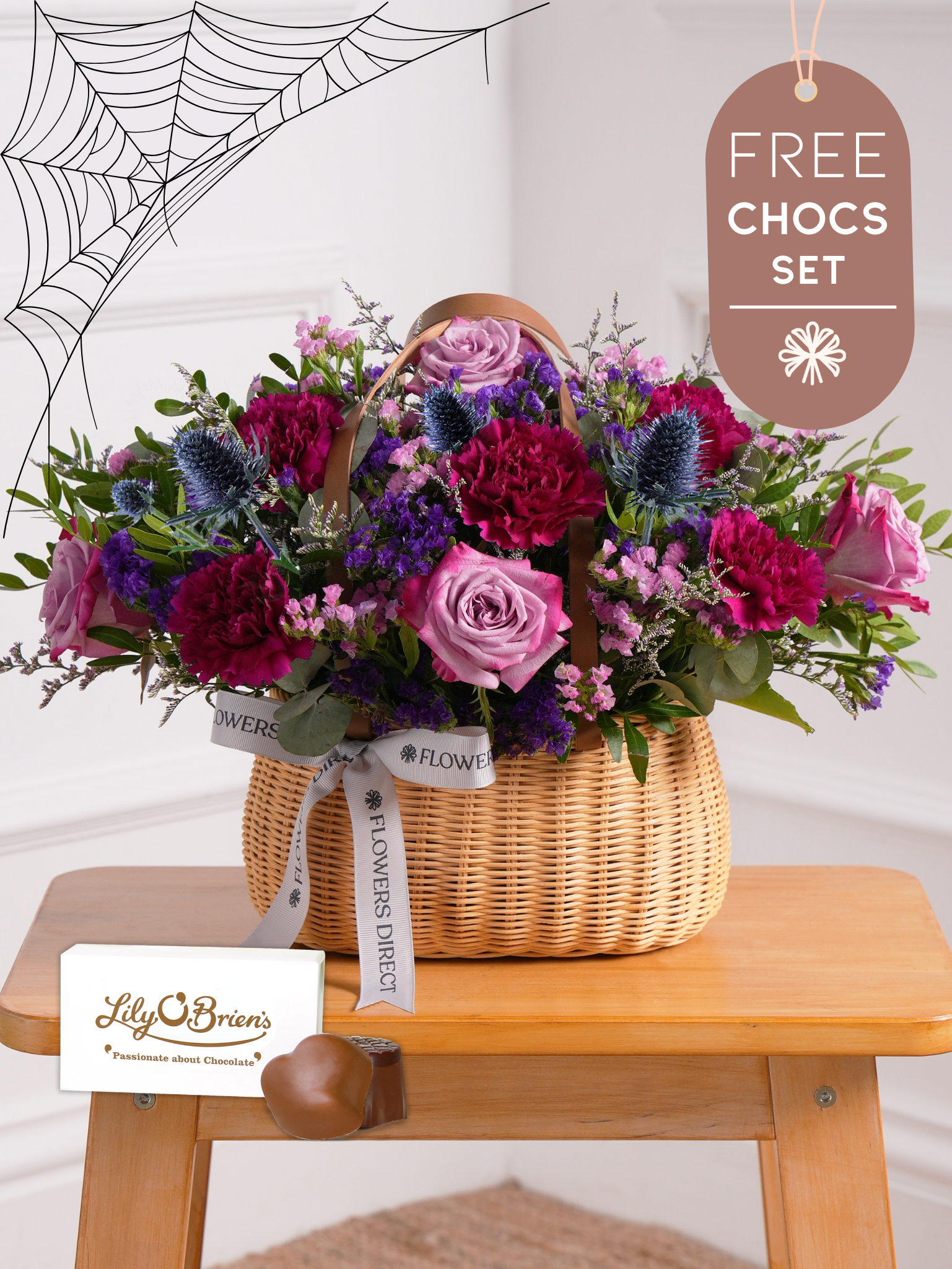 This arrangement includes Free Lily O'Brien 2pc Chocolate Set.