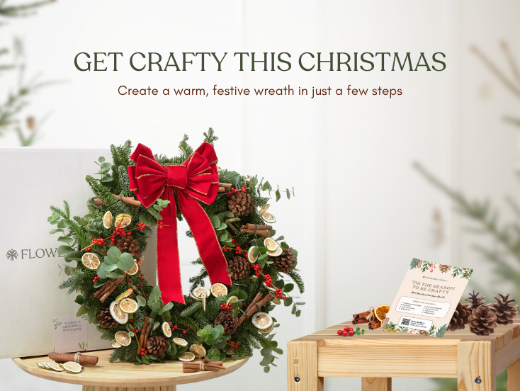 Place your Flowers Direct Wreath Kit on a clean, well-lit, and cosy surface. Open the box and get ready to begin.